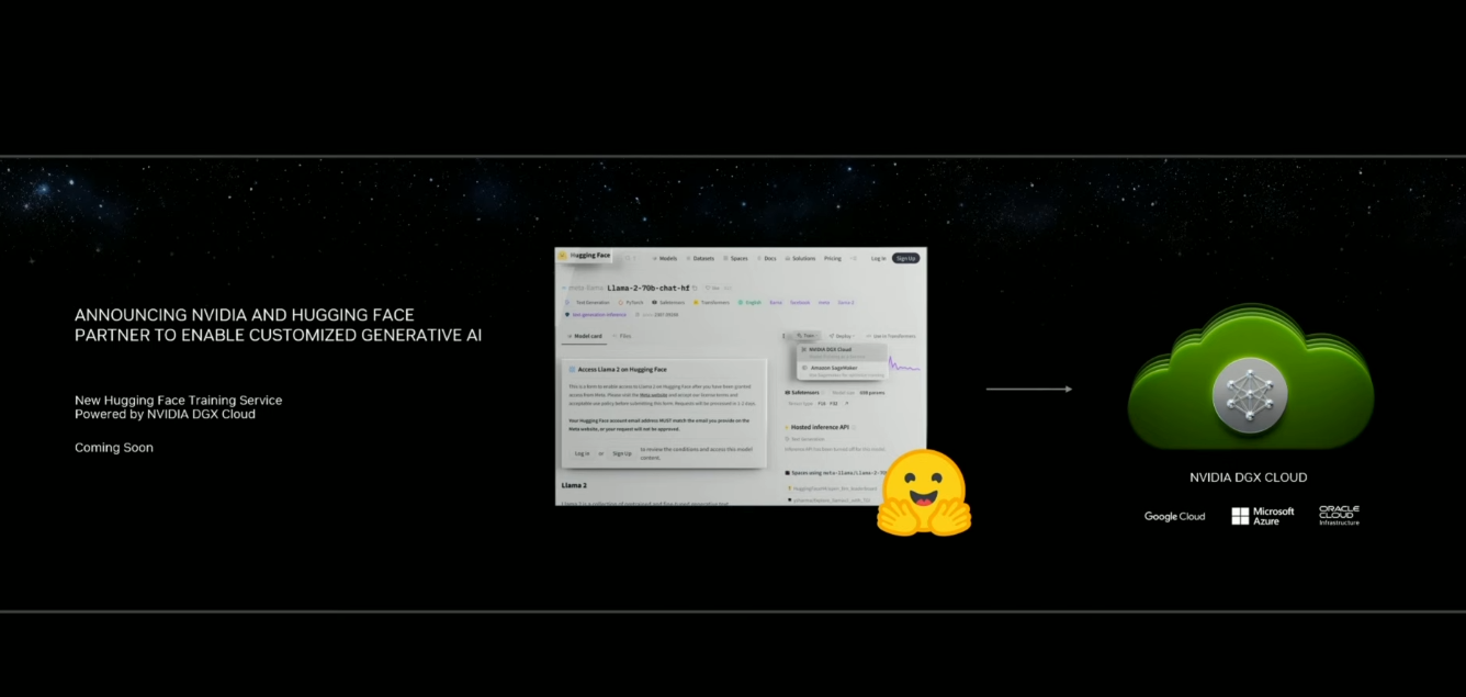 同时,英伟达宣布与Hugging Face合作,推出AI模型训练服务,背后由英伟达DGX云提供支持。