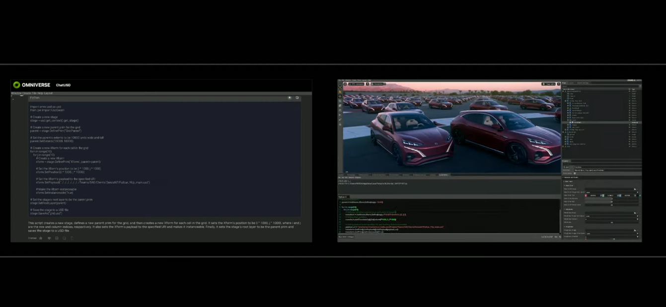 最后,黄仁勋宣布英伟达将加速OpenUSD技术的采用,推出ChatUSD,帮助开发者利用自然语言调整3D场景。