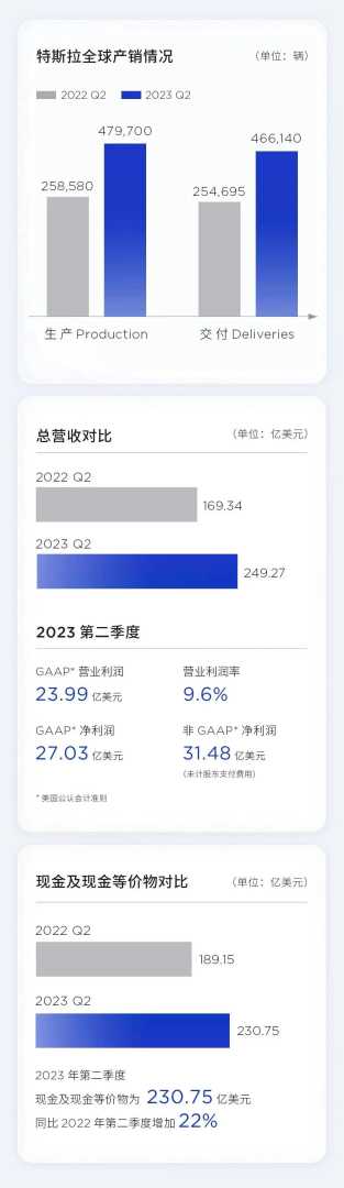 特斯拉发布2023年Q2财报:营收创新高,毛利率下滑