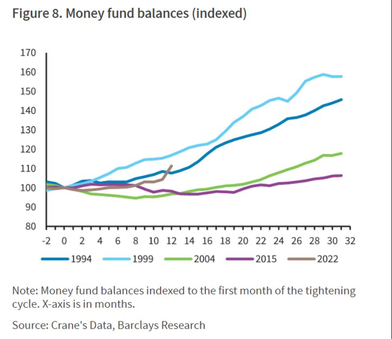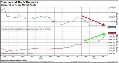 数据显示,随着银行存款的下降,货币市场基金管理的资产正在大幅增加。截至上周的前一个月内,美国货币基金管理的资产规模飙升约3120亿美元,达到创纪录的5.132万亿美元。这表明,储户们已经开始将资金从银行账户转向货币市场基金等更高收益的替代品。