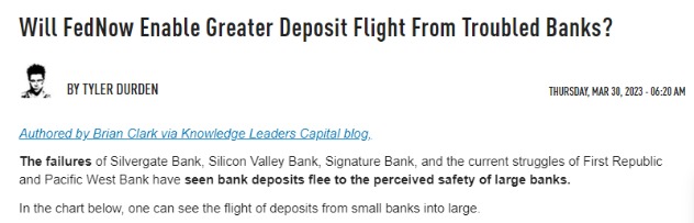 Abate预计,第二波存款外流已经开始,并且未来银行将更加积极地争夺存款。然而,除了这一风险外,知名财经博客网站Zerohedge还提到了另一个潜在的风险点——美联储计划在今年7月推出的新款即时支付工具FedNow。这一工具将允许银行客户全天候即时转移资金,可能会进一步加速储户从银行账户取出资金并将其转移到更高收益的替代品的能力。