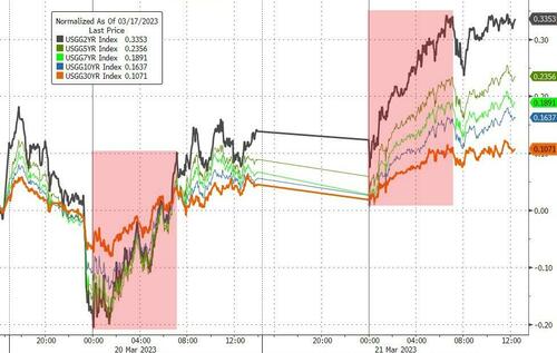 自上周五以来,2年期美债收益率已累计大涨34个基点,其中大部分抛售发生在欧洲时段。