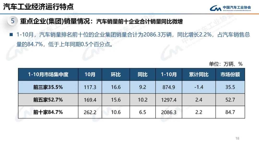 中国汽车工业协会分析指出,10月汽车销量增长得益于国家以旧换新政策的显著拉动,多地车展与促销活动的举办,以及企业新车型的密集投放,共同推动了车市热度持续攀升。乘用车市场在多重积极因素的推动下,表现持续向好;而商用车市场则相对疲弱。新能源汽车和汽车出口依然是推动汽车市场增长的重要力量。