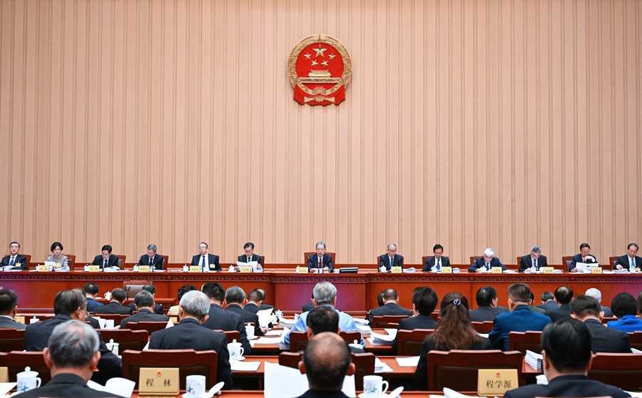 十四届全国人大常委会第十二次会议于4日上午在北京人民大会堂隆重举行首次全体会议,由赵乐际委员长亲自主持。会议规模盛大,常委会组成人员158人出席,符合法定人数。