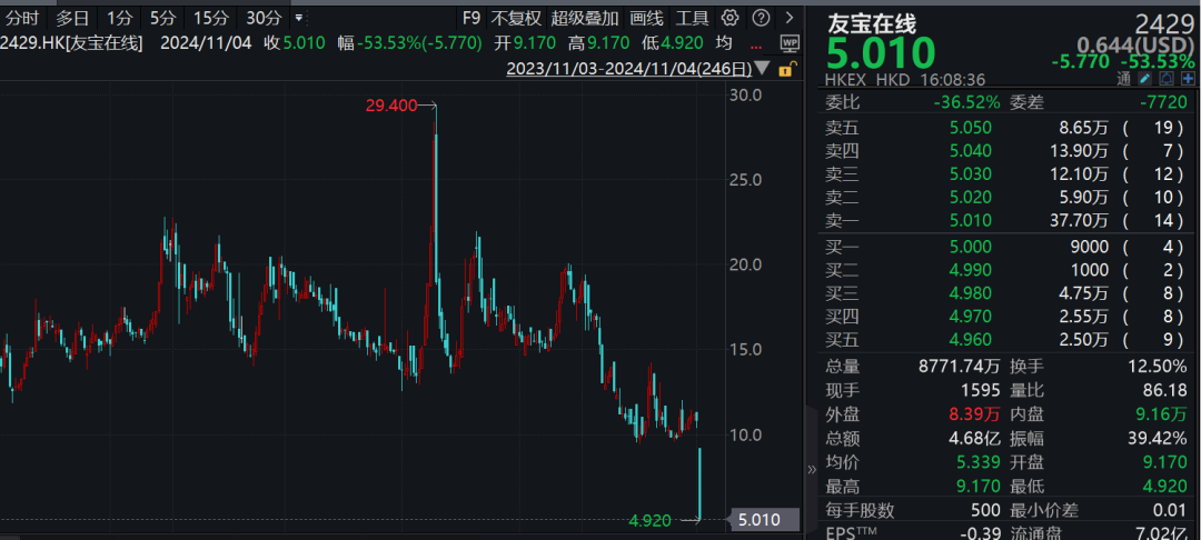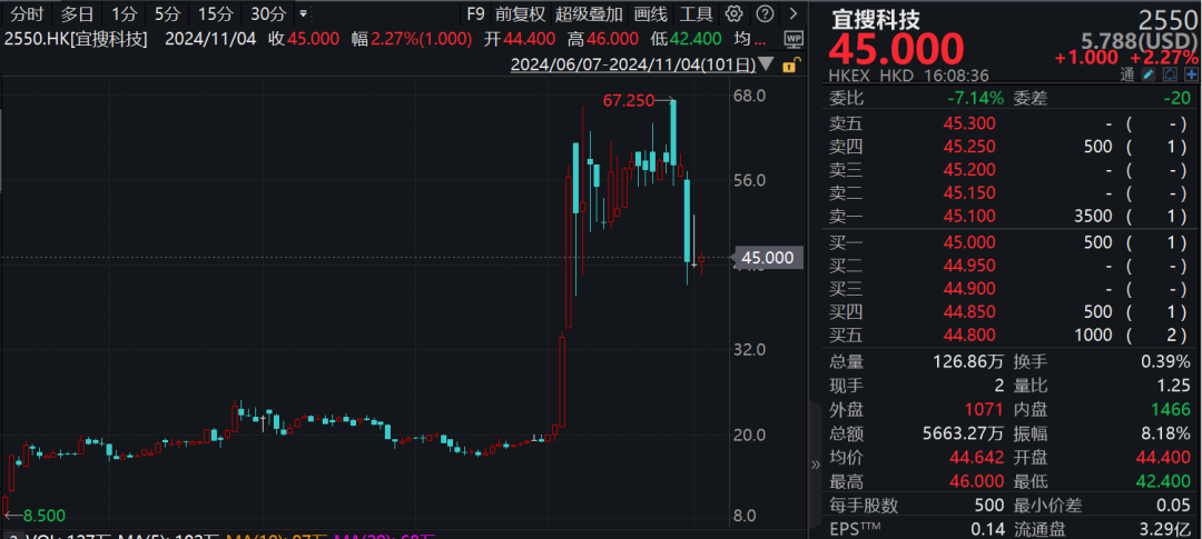 喜相逢集团于2023年11月9日正式登陆港交所,发行价为每股1.1港元。经过一年多的市场洗礼,公司股价持续攀升,于2024年10月31日创下历史新高18.7港元,最高涨幅达16倍。即便经过最近两个交易日的调整,其收盘价仍保持在15.24港元的高位,上市以来累计涨幅超过12倍。