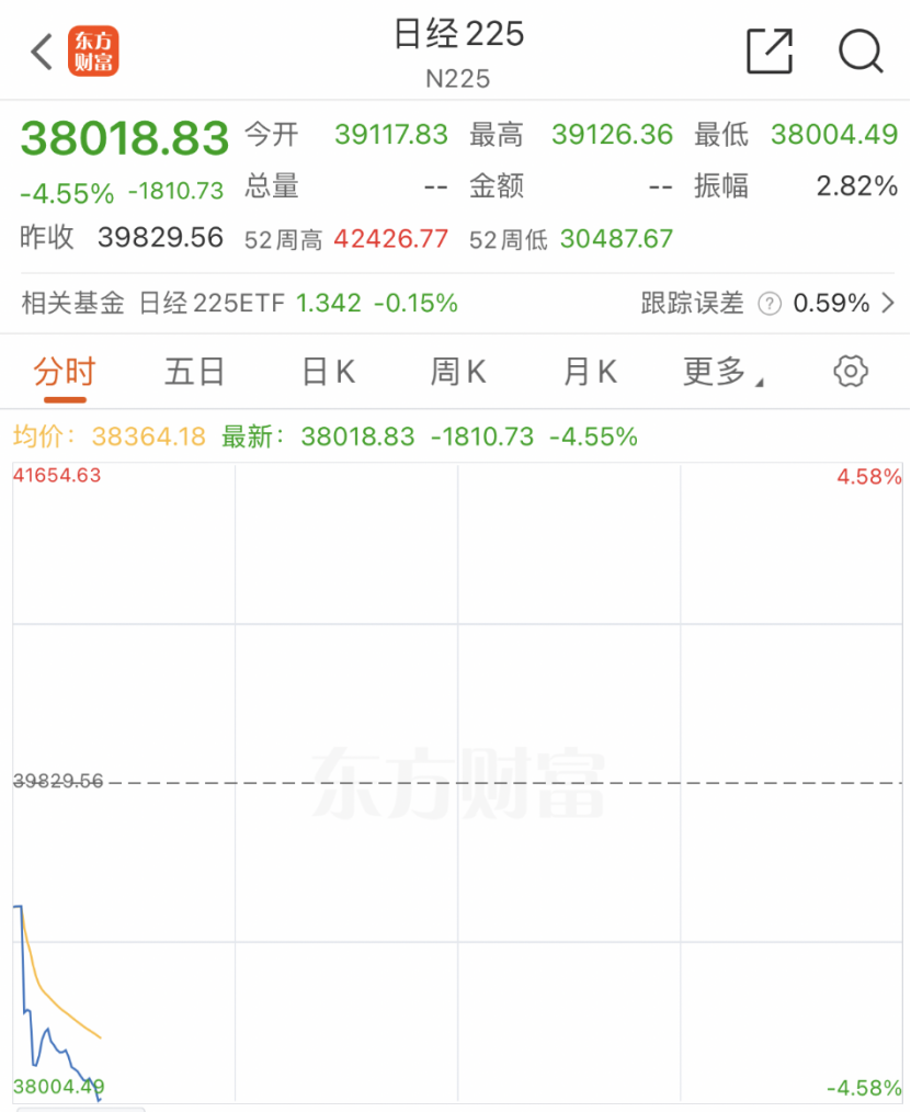 日本政坛“黑天鹅”事件引发市场动荡,大“鹰派”石破茂意外当选日本自民党新任总裁,导致日本股市遭遇重创。9月30日,日本股市开盘后遭遇猛烈抛售潮,日经225指数盘中暴跌超1800点,跌幅达到4.5%,东证指数也大幅下跌2.7%。房地产股票和汽车股普遍走低,住友房地产开发暴跌超8%,三菱房地产大跌超7%;铃木汽车、马自达汽车跌近7%,丰田汽车、本田汽车跌幅超过6%。