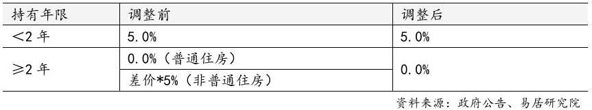图表展示了上海住房交易增值税的调整情况,数据来源同上。