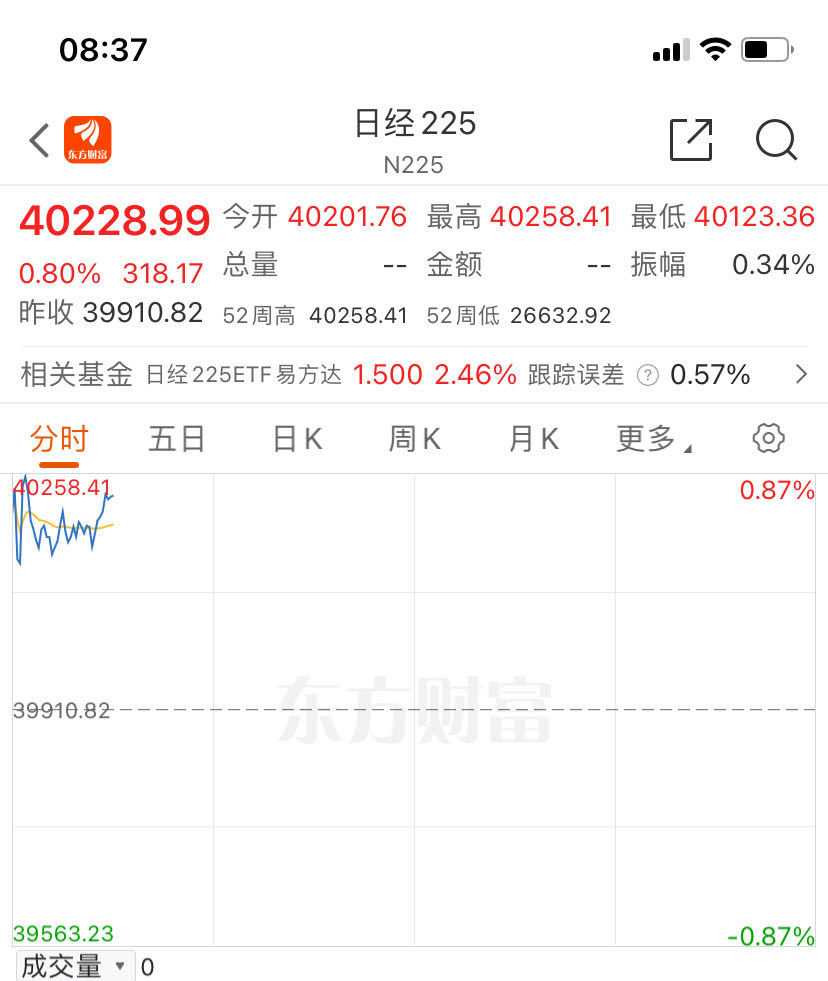 3月4日,日经225指数开盘即突破40000点大关,创下了历史性的新高,日内涨幅达到0.92%。截至本文发稿时,该指数继续上涨0.8%,暂报40228.99点。这一涨势引发了市场的广泛关注。