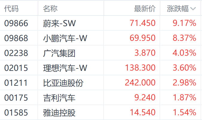 从市场表现来看,科技、游戏、旅游、汽车、房地产等多数板块反弹。科技股中,美图公司、微博-SW、京东集团-SW分别上涨10.76%、5.75%、3.60%,受外围市场利好提振及ChatGPT热度回暖影响。游戏股中,网易-S、哔哩哔哩-W、IGG分别上涨5.49%、4.74%、4.19%,节假日因素利好提振。旅游股中,美兰空港、华住集团-S、呷哺呷哺分别上涨6.67%、5.29%、4.76%,黄金周出行火爆。汽车股中,蔚来-SW、小鹏汽车-W、理想汽车-W分别上涨9.17%、8.37%、3.60%,受美国汽车工人联合会罢工消息影响。