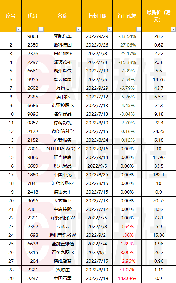 值得注意的是,第三季度上市的零跑汽车(09863.HK)和中国石墨(02237.HK)分别创下了今年以来新股首日跌幅之最和涨幅第一。零跑汽车首日跌幅达33.54%,而中国石墨则大涨143.08%。