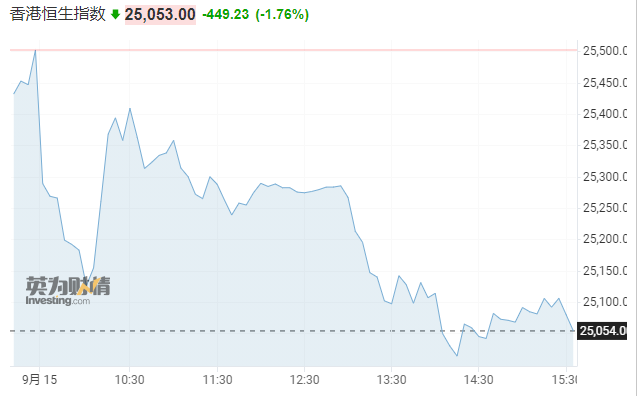 香港恒生指数周三全天走低,截至发稿时报25053点,下跌1.76%。风电、核电板块表现突出,而博彩、医疗板块则跌幅居前。港股博彩股集体受挫,其中永利澳门跌逾28%,金沙中国跌超30%,美高梅中国跌近25%,银河娱乐跌超18%。这一走势与澳门特区政府近期举行的关于修改《娱乐场幸运博彩经营法律制度》的公开咨询新闻发布会有关。