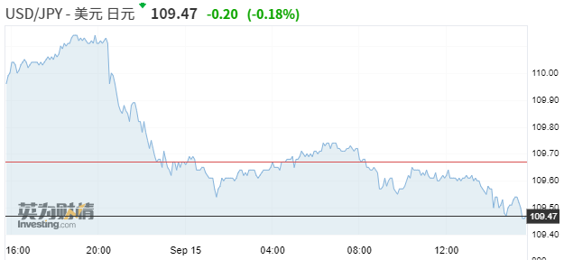 外汇市场:美元兑日元汇率走低,截至发稿时下跌0.18%,报109.47。