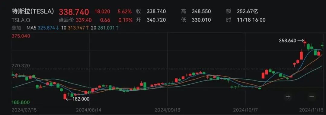 特斯拉股价上涨5.62%,有消息称特朗普的团队计划将构建完全自动驾驶汽车的联邦框架作为交通部的优先事项之一,这对特斯拉来说构成重大利好。