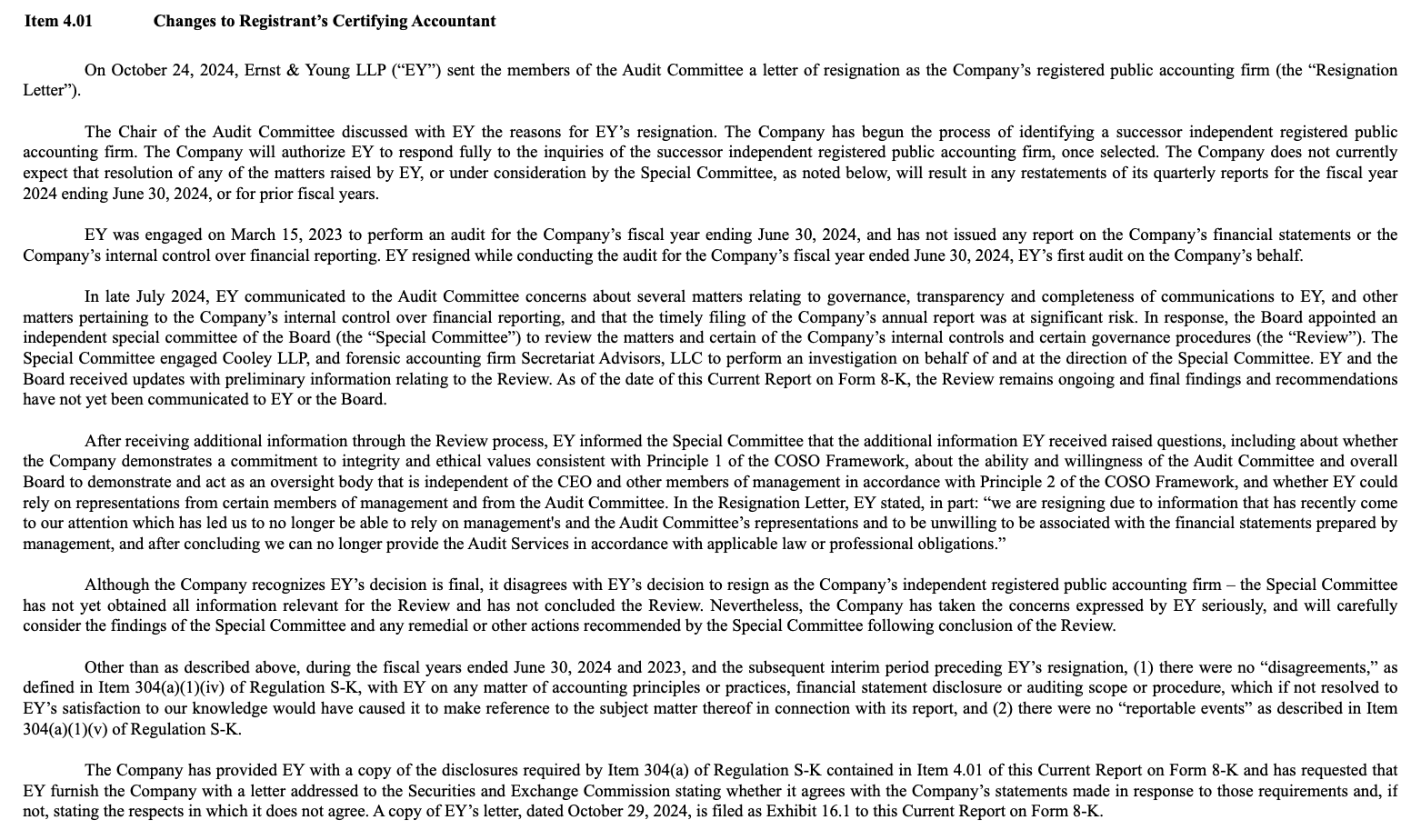 在美股市场中,知名上市公司收到如此决绝的审计师辞职信实属罕见。安永在辞职信中直言,由于对公司管理层及审计委员会陈述的信任度降至冰点,决定辞去审计服务。