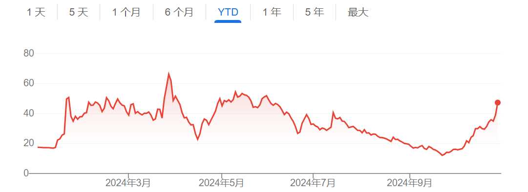 作为备受瞩目的“特朗普概念股”,DJT近几周股价飙升,累计涨幅接近280%,这一强劲表现反映出市场对特朗普赢得大选的信心显著增强。