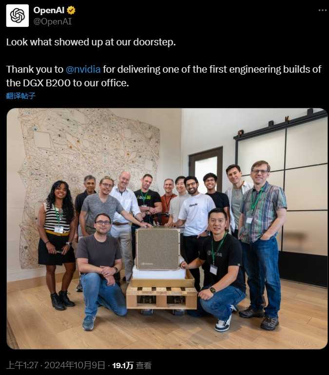 OpenAI亦宣布收到英伟达寄送的GB200服务器,开发人员已开始使用首批DGX B200工程机。