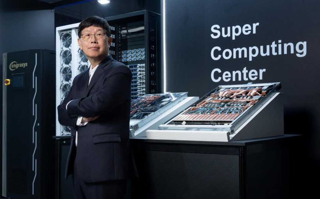 (刘扬伟和GB200 NVL72数据中心平台,来源:鸿海)