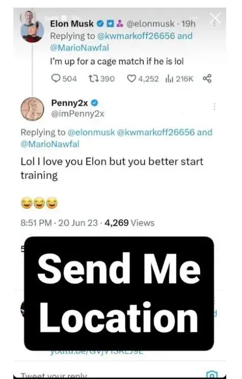一开始,这或许只是一句玩笑话。6月21日,马斯克在推特上针对Meta拟发布的类推特平台Threads进行评论,并遭到网友“正告”。马斯克不甘示弱,表示愿意进行一场“笼斗”,前提是扎克伯格也同意。扎克伯格在Instagram上简短回复:“把地址发给我。”Meta发言人确认,扎克伯格并非开玩笑。