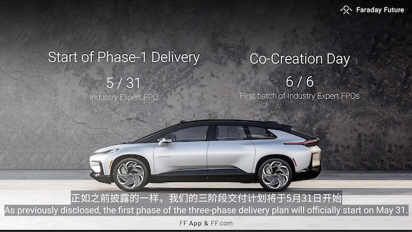 资金紧缺的FF在交付上多次推迟,持续消磨消费者和市场的信心。按照原计划,第一批生产的FF 91 Futurist Alliance限量300辆,计划于4月初下线并交付,但随后又推迟到5月底,如今又采取了分阶段交付的策略。