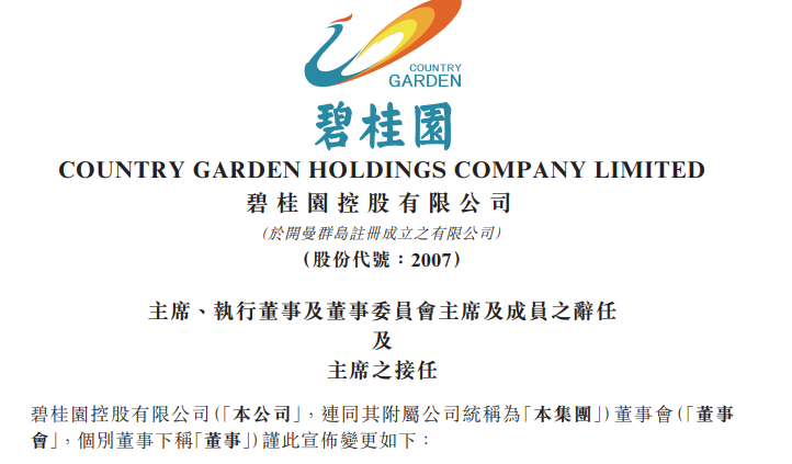 碧桂园高层变动:杨国强辞任主席,杨惠妍接任
