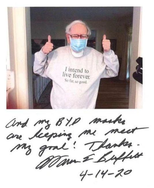 图:2020年,巴菲特在社交平台上点赞比亚迪生产口罩。