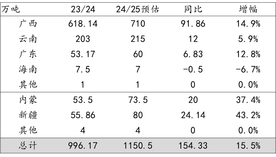 (2024/25榨季国内糖产量预估图片来源:招商期货)