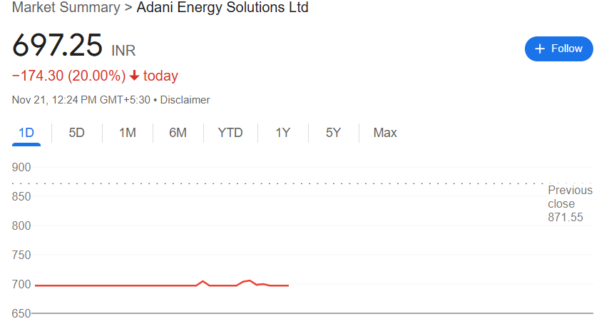62岁的阿达尼及其他七名被告被指控向印度政府官员支付超过2.5亿美元的贿赂金,目的是获取太阳能合同,这些合同预计能带来超过20亿美元的利润。消息一出,阿达尼集团的旗舰公司阿达尼企业(Adani Enterprises)股价应声下跌约20%,核心公司阿达尼绿色能源(Adani Green Energy)更是暴跌18.95%,阿达尼能源(Adani Energy)股价也下跌了20%。