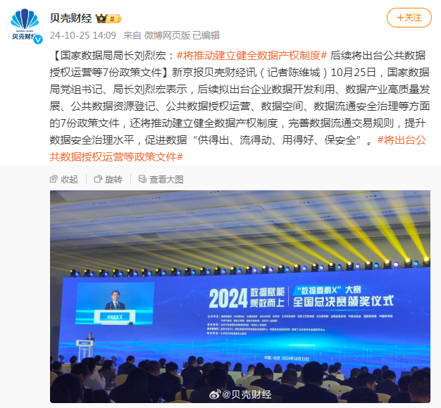 国家数据局党组书记、局长刘烈宏表示,将出台7份数据相关政策文件,涵盖企业数据开发利用、数据产业高质量发展等方面,旨在推动建立健全数据产权制度,完善数据流通交易规则,提升数据安全治理水平。