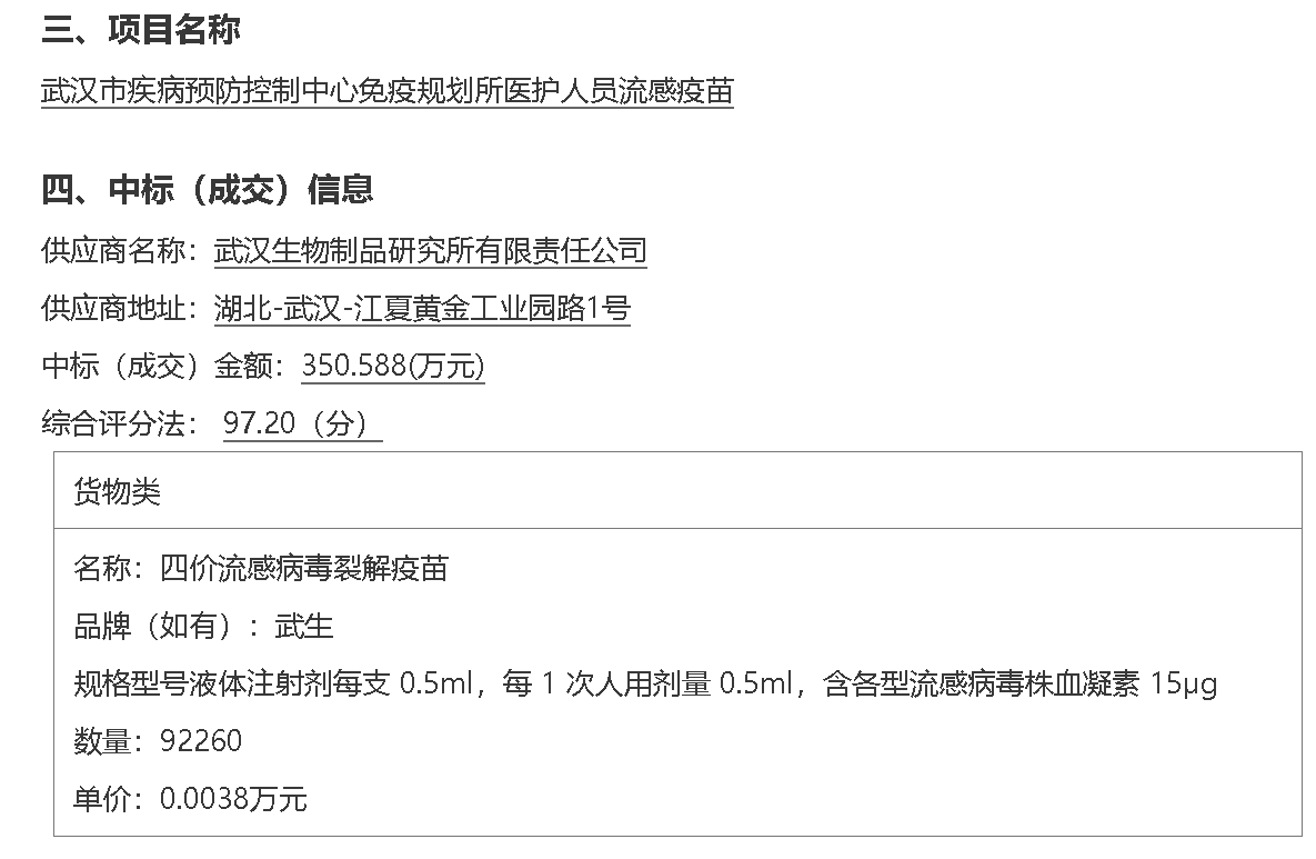 在疫苗生产领域,竞争异常激烈。今年5月,国药率先降价,将四价流感疫苗价格压低至百元以下。此前,深圳市针对在校中小学生的三价流感疫苗采购中,有厂商报出6.5元/支的历史最低价。近日,武汉市医务人员的流感疫苗招标中,中标价为每支38元,四价疫苗价格战愈演愈烈。