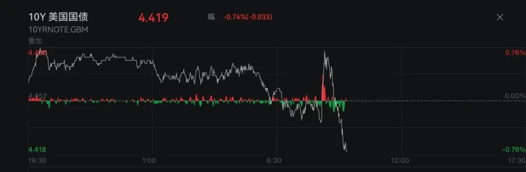 经济数据方面,美国上周首次申领失业救济人数为21.7万人,低于预期的22万人,劳动力市场开始企稳。数据公布后,美元短线小幅拉升后震荡下行,美国国债短线拉升后再度下跌,10年期美国国债收益率一度上升至4.478%的历史高位附近。
