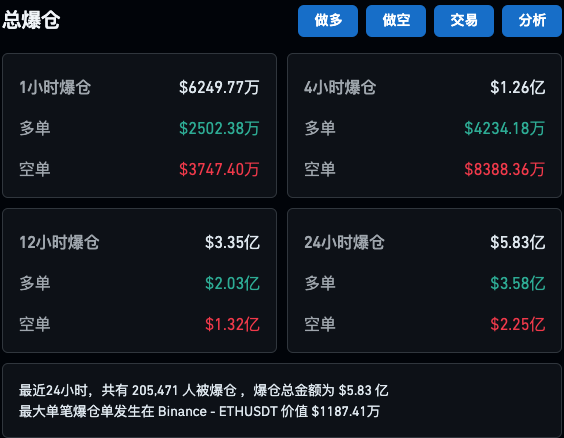 比特币价格在短暂回调后再次发起猛攻,向上触及93000美元,续创历史新高,24小时内涨幅接近6%。然而,剧烈的波动也让不少投资者血本无归。数据显示,过去24小时内有超20万人爆仓,爆仓总金额接近6亿美元。