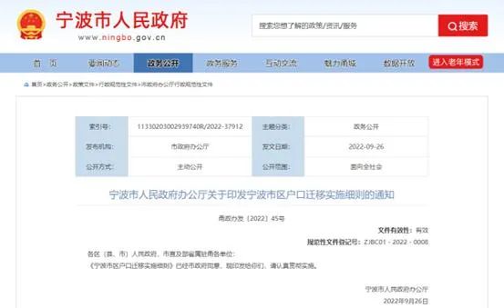 此外,浙江宁波自10月27日起正式施行户口迁移新政,其中一项重要调整是实行“70年产权房即可落户”政策,取消了原先“缴纳社保”的要求,进一步放宽了市区落户条件。