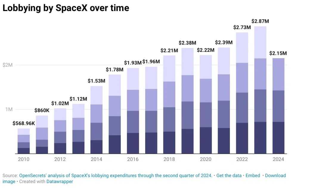 7月特朗普遭遇刺杀事件后,原本在政治上保持低调的马斯克迅速站队特朗普阵营,并逐渐成为其最大的金主之一。据美国联邦选举委员会10月中旬公布的文件显示,马斯克已向政治行动委员会America PAC捐款超过1.18亿美元,全力支持共和党总统候选人特朗普。此外,他还为共和党竞选国会捐款超过28.9万美元,展现出对共和党执政的强烈期待。