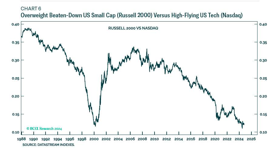 面对这些不可持续的极端情况,Joshi建议投资者采取以下策略:首先,鉴于日元疲软可能不可持续,日元有很大的上涨空间;其次,鉴于日元与美国科技股估值之间的负相关关系,日元多头头寸为美国科技股的疲软提供了绝佳的对冲工具;第三,相对于美国科技股,超配美国小盘股。