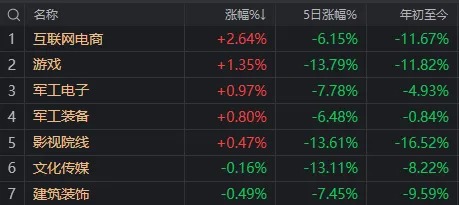 此外,华为概念股早盘冲高回落,龙头股润和软件全天成交额居A股榜首,但收跌0.73%。而游戏、影视、传媒以及互联网电商和军工电子、军工装备等行业则逆势领涨。