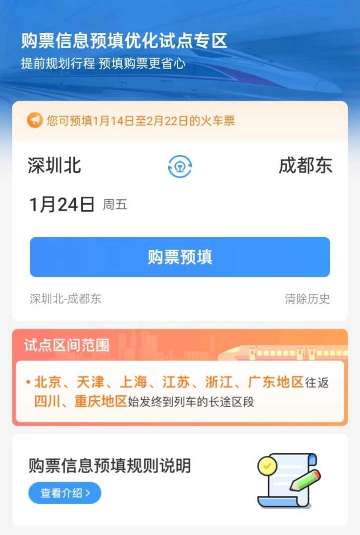 此功能不仅拓宽了旅客预填购票信息的时间范围,还无需时刻关注车票起售时间,提升了购票体验,同时有利于铁路部门收集出行需求,优化运力投放。