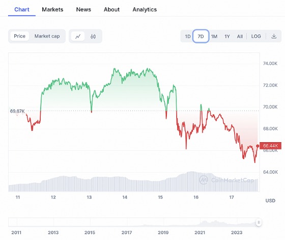 3月17日,加密货币市场集体“跳水”,打破了此前连续多日的上涨势头。其中,比特币价格更是一度跌破6.5万美元/枚的关键价位,截至下午5点,其报价为6.64万美元/枚,过去24小时内价格下跌了3.31%,而过去一周的跌幅则达到了4.38%。