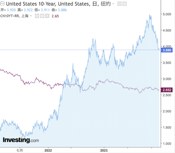 随着全球降息信号的持续释放,大量资金涌入美国债券市场,推动美债收益率显著下滑。10年期美国国债收益率从高峰时的5%以上迅速降至目前的3.9%以下。这一变动导致中美利差迅速收窄,当前利差已缩小至约1.2%,与之前的最高水平2.3%相比,有了明显的收缩。