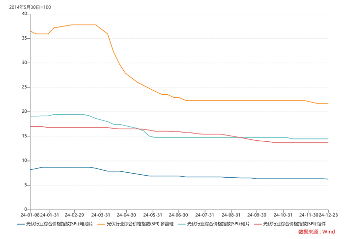 光伏行业股价的再度大幅下跌引发了市场广泛关注。2024年上半年,光伏产业链各环节价格均出现下滑,硅片、电池片和组件的价格指数分别下跌了24%、24%和20%,硅料价格更是大幅下跌41%,创出阶段新低。