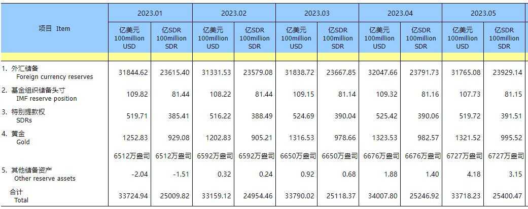 中国5月末外汇储备及黄金储备数据出炉