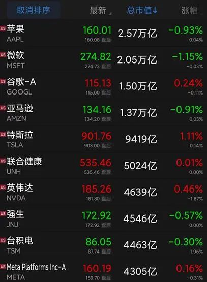 从盘面上看,大型科技股的表现呈现分化态势。微软下跌1.15%,苹果和亚马逊均下跌约0.9%。而谷歌、英伟达以及脸书母公司Meta则录得小幅上涨。特斯拉表现抢眼,上涨1.11%,股价成功突破900美元大关。花旗分析师上调了特斯拉的目标价,由375美元上调至424美元,主要受到超预期二季度财报和成本降低的积极影响,但仍维持卖出评价。特斯拉首席执行官马斯克表示,通胀正在下降,更多特斯拉商品成本也趋向下跌。
