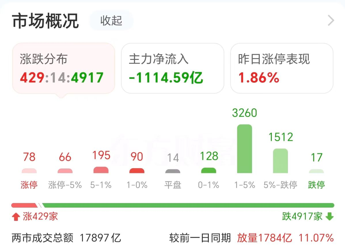 周五A股单边下行,创业板指领跌,市场成交额放量