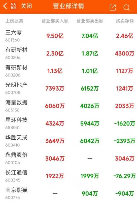 从机构角度看,日内机构席位净买入13只个股,其中净买入四川九洲8561万元,净买入星环科技4779万元。相反,机构席位则净卖出易点天下2.52亿元。此外,从沪/深股通席位来看,陆股通净买入三六零2.46亿元,而净卖出海能达1.1亿元。
