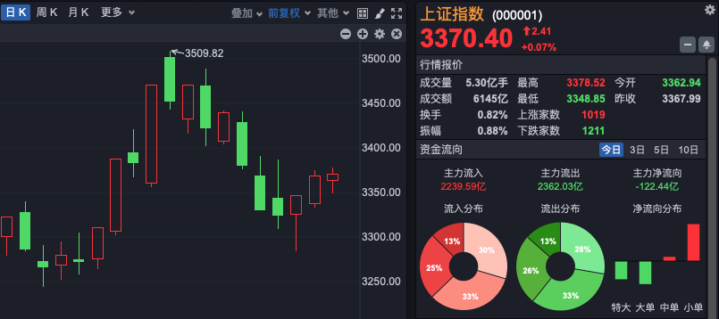 今日,A股市场围绕昨日收盘点位呈现小幅震荡态势,上证指数、深证成指及创业板指等重要股指全天红绿转换频繁,均超过10次。尽管下跌个股略多于上涨个股,但全天成交额保持在1.66万亿元的高位,与昨日基本持平。值得注意的是,A股三大指数均收出小阳线,本周已呈现三连阳的走势。