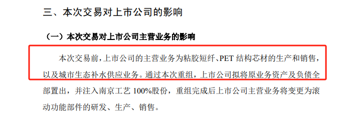 通过此次重组,南京化纤将全面置出原业务资产及负债,并注入南京工艺100%股份,主营业务将转变为滚动功能部件的研发、生产和销售。交易完成后,南京化纤将迅速获得完整的滚动功能部件产品线、客户群和技术人才,成功切入国内装备制造核心零部件行业,实现业务转型升级。