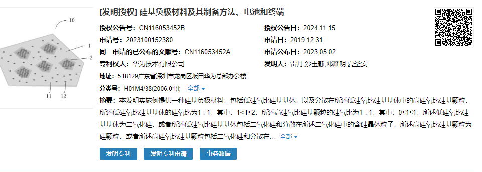 华为公布硅基负极材料新专利,固态电池领域应用前景广阔