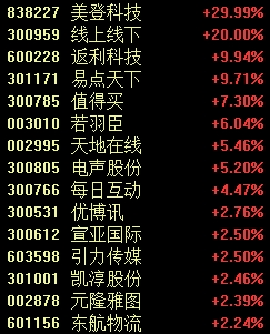 继周三之后,电商概念股在今日再度成为市场焦点,涨幅居前。拼多多、快手、抖音等电商概念板块中,多只股票实现了“30CM”或“20CM”的涨停,更有不少股票的涨幅超过了10%。