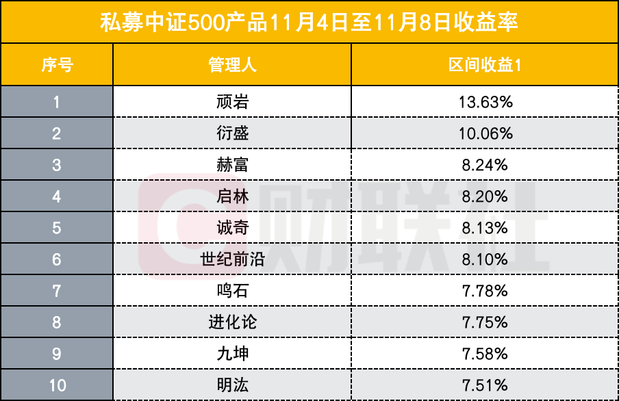 上周,多家知名私募旗下的指数增强型产品也取得了显著的超额收益。其中,宽德、世纪前沿、星阔、启林、量派、金锝等知名私募旗下追踪中证1000指数的产品收益超过9.3%,跑赢中证1000指数1个百分点。同时,顽岩、衍盛、赫富、启林、诚奇等知名私募旗下追踪中证500指数的产品收益也超过7.7%,跑赢中证500指数超1个百分点。