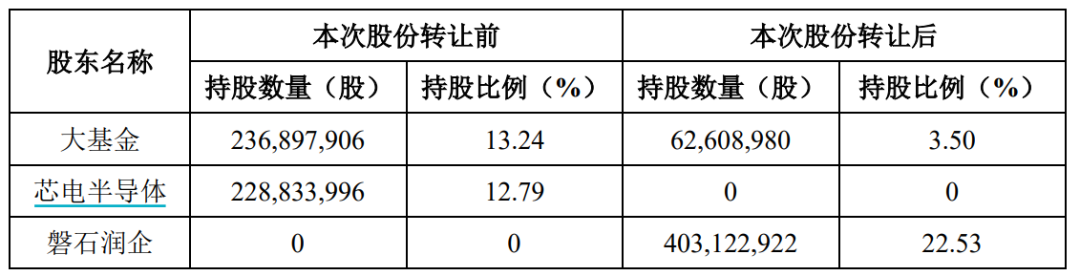 此前,长电科技的两大股东——国家集成电路产业投资基金股份有限公司(大基金)和芯电半导体(上海)有限公司(芯电半导体),分别与磐石香港有限公司(磐石香港)签订了《股份转让协议》。根据协议,大基金将其持有的公司9.74%股份,芯电半导体将其持有的公司12.79%股份,均转让给磐石香港或其关联方。