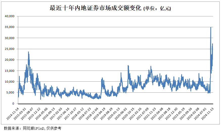机构投资者方面,权益类基金尤其是ETF的增长尤为显著。截至11月12日,全部ETF基金规模已达约3.7万亿元,较9月23日的2.7万亿元增长了约万亿元。此外,北向陆股通资金的交易活跃度也明显提升,自9月24日以来,成交额多次超过2000亿元,11月12日更是达到3081亿元。